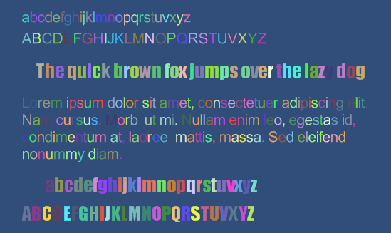 The screenshot above shows that you can also change the color of the individual characters using Sprite Manager. I got the result above by changing the following (long) line of code in BitmapFontDemo.AddText